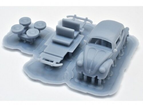 Stavebnice legenárního Brouka. Vytištěno na 3D tiskárně z resinu. Perfektní kvalita zpracování, velmi detailní model. Model se sestavuje z karoserie, podvozku a kol. Neobsahuje zasklení.