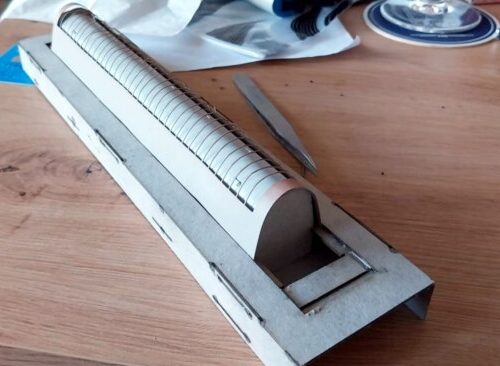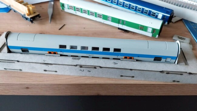 Stavebnice patinovací krabičky. Tuto krabičku využijete při patinování střech dlouhých vozů. Slouží k upevnění vozu a patinovací šablony tak, aby tato byla těsně nad střechou vozu a docházelo tak při nanášení rzi na střechu k plynulým přechodům mezi pruhy. Krabička má nastavitelné příčky, takže je možné ji použít na vozy od výrobců Tillig i Kuehn (Roco) a to konkrétně typy Y (A, B, BDs, Bdtee…), X (WRm,…), Z (Bmee, Bdmpee, Bdmtee…) a Bmto/Bmo. S trochou šikovnosti i na ostatní dlouhé vozy například od malovýrobců.