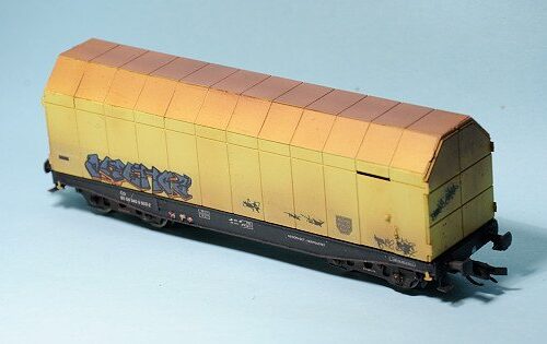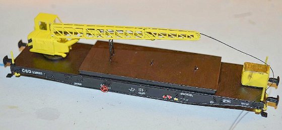 Polyuretanová a leptaná stavebnice jeřábové nástavby AB-063 pro konverzi vagónu Smmp/Pa na dílenský vůz. Obsahuje odlité díly, leptané díly a aršík s obtisky.