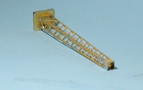 Použití: Stavebnice se skládá ze 4 dílů, které se k sobě pájí nebo lepí vteřinovým lepidlem. Každý stožár obsahuje patku, do které se zapájí. Do patky je možné vpájet zevnitř mosazné upevňovací prvky (tyče, šroub, matice,) nebo zalít jiný materiál např. epoxidem, vnitřní rozměr patky 12 x 10 mm.