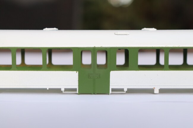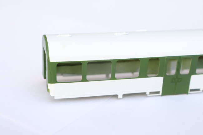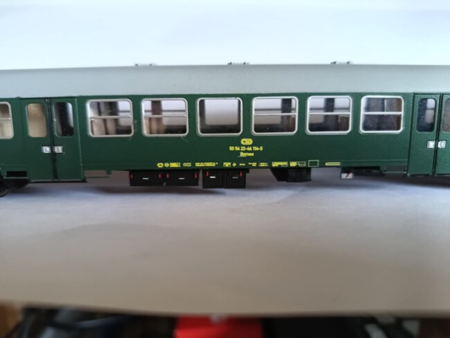 Pozor – vozy Halberstadt se na představku zužují, vůz Bdmtee se zužuje jen v rozích skříně. Rozdíl není nijak zásadní, ale oko perfekcionisty rozdíl pozná. Jedná se tedy o kompromisní řešení přestavby při využití továrního modelu (tovární tvar a tovární jízdní vlastnosti).