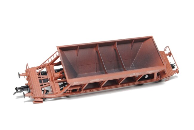 Kompletní stavebnice samovýsypného vozu původní řady Sav novějšího provedení, typ 2-220. Obsahuje probarvené plastikové výlisky na sestavení modelu včetně kinematik, spřáhel a kvalitních soustružených kovových dvojkolí, kovové lepty, závaží, obtisky s dvojicí provozních čísel a imitaci nákladu. Provozovatel České dráhy/Mostecká uhelná společnost, V. epocha.