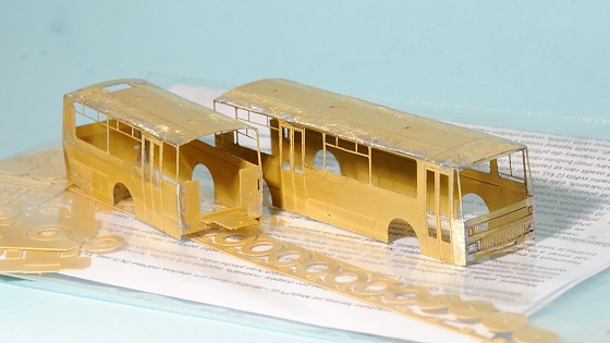 V případě kloubového autobusu nejsou části spojeny, harmonika je přiložena zvlášť k dolepení.