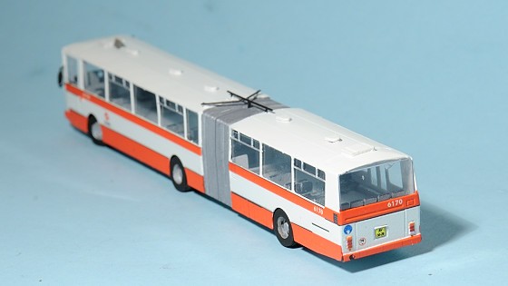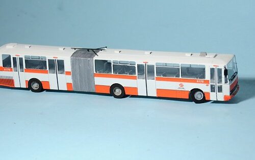 H0/1:87, leptaná stavebnice typického českého kloubového autobusu Karosa v městské verzi B741.