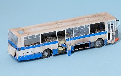 Leptaná stavebnice linkového autobusu Karosa C734. Verze s otevřenými dveřmi – umožňuje například sestavení vraku autobusu, nebo naopak autobusu na zastávce s otevřenými dveřmi (předními i zadními).