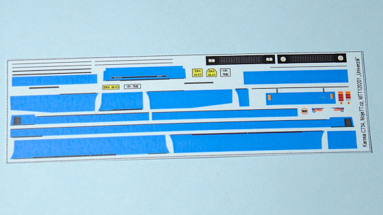 Obtisky obsahují základní univerzální motivy (přední masky, SPZ a další drobnosti). Z rozvinovacího seznamu můžete objednat obtiskové pruhy, které obsahují vše potřebné na obtisknutí bíle nastříkaného autobusu.
