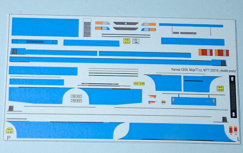 Obtisky obsahují základní univerzální motivy (přední masky, SPZ a další drobnosti). Z rozvinovacího seznamu můžete objednat obtiskové pruhy, které obsahují vše potřebné na obtisknutí bíle nastříkaného autobusu.