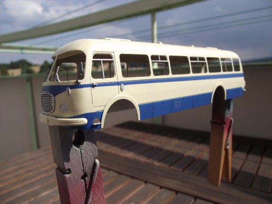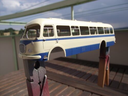 Použití: Autobus je vhodné pájet. Interiér je po oddělení dílů z rámečku (u větších dílů občas nutné projet drážku nožíkem nebo prostříhnout nůžkami, pokud není řez na 100 % skrz) nejlepší lepit disperzním lepidlem (Herkules) nebo řídkým vteřinovým lepidlem. Obtisky jsou řešeny tiskem na čirý obtiskový papír, potřebují tedy pod sebou vždy světlý (nejlépe bílý) podklad a je nutné je vždy obstříhnout dle požadovaného tvaru (popisky nemají samostatný lak). Pouze obtiskové pruhy obsahují malý aršík tisknutý na bílý podklad, zde je naopak nutno obstříhnout přesně požadovaný tvar výsledného obtisku. Před započetím stavby je vhodné si přečíst články popisující stavbu včetně vypsaných tipů, triků a rad.
