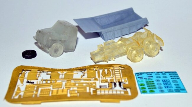 Jednoduchá stavebnice nákladního automobilu vyrobená 3D tiskem. Jedná se o 3D výtisk, čirý materiál, stačí vymaskovat okna a nastříkat, nebo natřít štětcem. Velmi jednoduchá stavebnička i pro začínající modeláře.