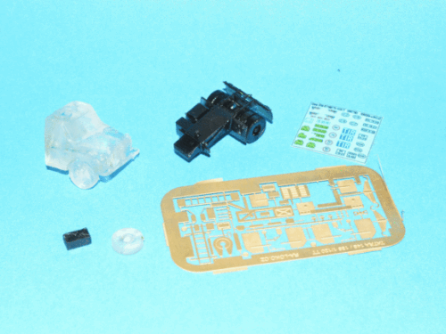 Použití: Díly se po začištění lepí vteřinovým lepidlem a opatřují povrchovou úpravou. V případě čirých kabin je nutno vymaskovat okna před barevnou úpravou kabin.