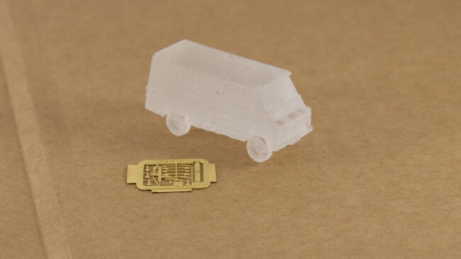 Jednoduchá stavebnice nákladního automobilu vyrobená 3D tiskem. Jedná se o 3D výtisk, čirý materiál, stačí vymaskovat okna a nastříkat, nebo natřít štětcem. Velmi jednoduchá stavebnička i pro začínající modeláře.