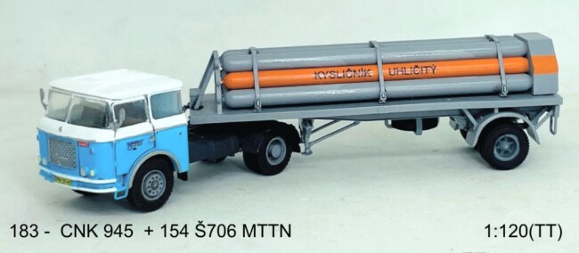 TT/1:120, stavebnice bateriového návěsu CNK 945 pro přepravu plynů.