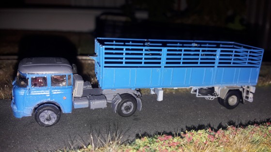 Stavebnice jednoosého valníku BSS N10V. Obsahuje vysokou nástavbu bez plachty. Zastřižením lze odstranit zvýšené bočnice a snížit je.