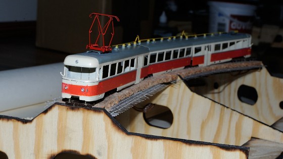 - sestavené funkční kovové pantografy Sommerfeldt (červeně lakované)