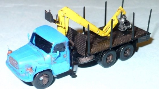 Polyuretanová + leptaná stavebnice T148 ve verzi lesovozu s rukou HARA60 pro převoz krátkého dřeva.