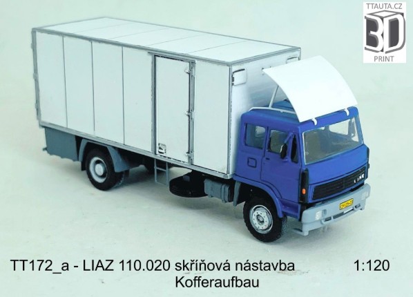TT/1:120, stavebnice skříňového vozu Liaz 110 ve verzi čisté skříně bez popisu.