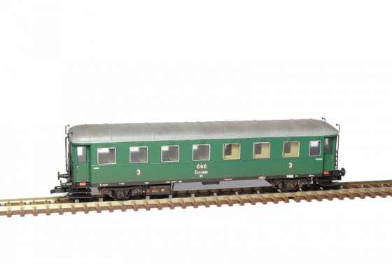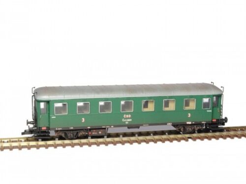Kompletní plastiková stavebnice osobního vozu „Rybák“ ve verzi s osmi okny. Obsahuje probarvené plastikové výlisky na sestavení modelu včetně kinematik, spřáhel, kovových leptů, kvalitní soustružená dvojkolí, závaží a obtisků. Stavebnice je připravena na zástavbu osvětlení interiéru z naší nabídky a obsahuje díly zasklení s již natištěnými rámečky. Provozovatel Československé dráhy.