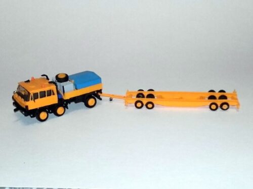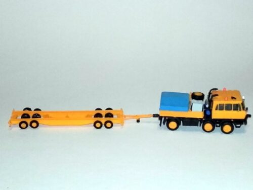 Polyuretanová stavebnice podvalníkového přívěsu pro pře pro přepravu železničních vagónů do rozvoru 10 metrů, používaný ke kombinované přepravě. Vyráběno v Itálii, 80. léta., jsou doloženy příklady použití u nás (např. s vozem Gbgkks).