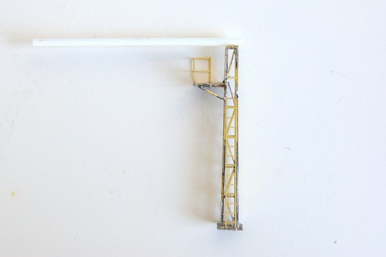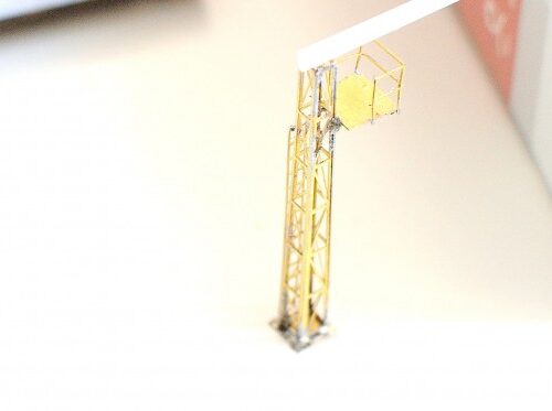 Stavebnice základu popelového portálového jeřábu. Jeden příhradový stožár, určeno na druhé straně k přistavení k budově. Pokud potřebujete samostatně stojící portálový jeřáb, potřebujete 2 ks stavebnice. Slouží jako základ, ke kterému si dotvoříte zbytek doplňků. Jeřáby byly v provozu velmi individuálně tvořené, vpodstatě co kus to originál. Bylo možné je najít v každém zázemí depa.