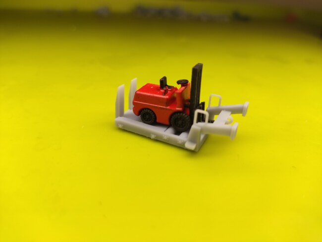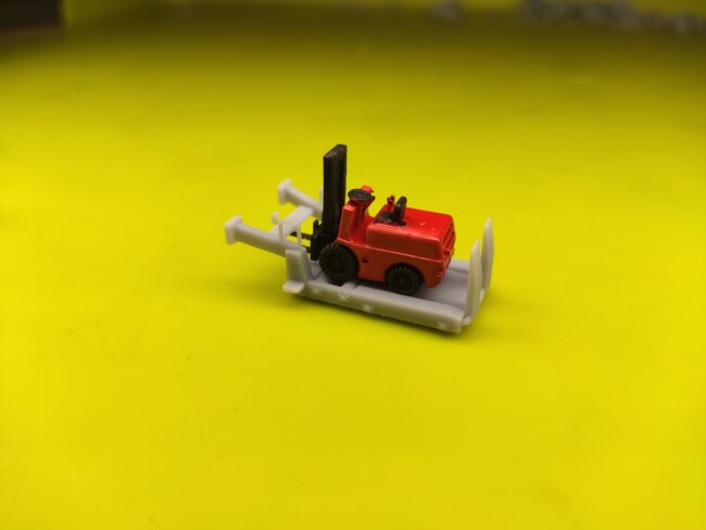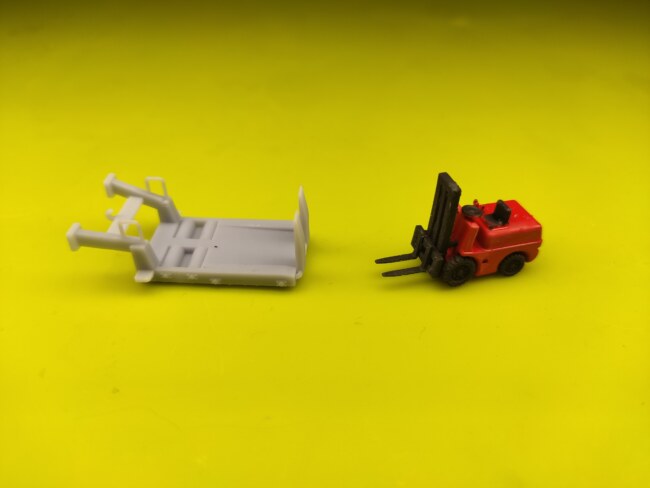 Jednoduchá stavebnice kolejovéhého vozíku (posunovadlo) pro zajištění posunu na železniční vlečce s využitím pohonu vysokozdvižného vozíku. Vyrobená 3D tiskem. Jedná se o již začištěný 3D výtisk. Stačí slepit díly k sobě, velmi jednoduchá stavebnice, zvládne i začátečník. Zasklení pomocí přiložené folie.