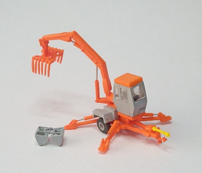 Polyuretanová stavebnice přívěsného nakladače UNHZ 750. Plně funkční model, možnost volby ze dvou drapáků. Kvalita odlití dílů je špičková, odlité jsou i ty nejdrobnější díly velmi detailně.