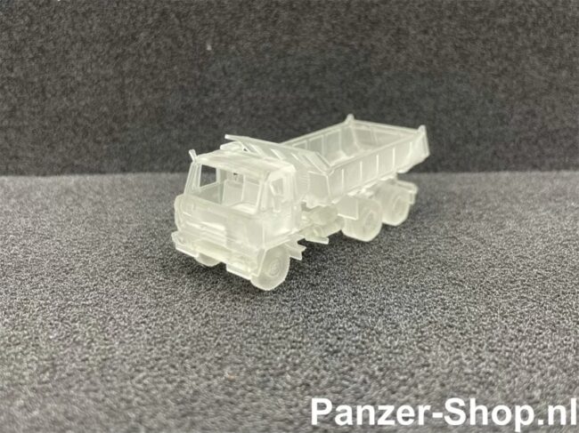 3D tiskem vyrobená stavebnice jednostranné sklápěčky T815 6×6 S1 se 4 světly. Obsahuje tisknuté díly.