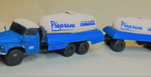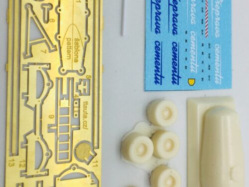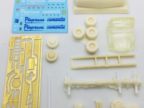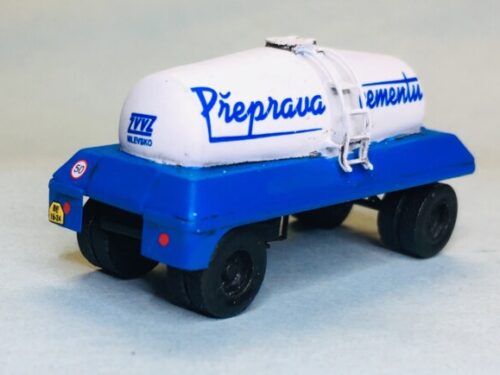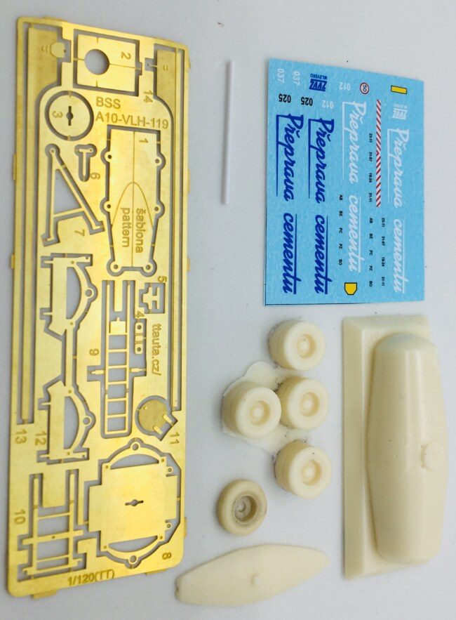 Polyuretanová stavebnice přepravníku cementu T138 VLH119 a vleku  VLH A-10-119. Prodáváno dohromady jako automobil + vlek. Obsahuje odlité díly, leptané doplňky a obtisk.