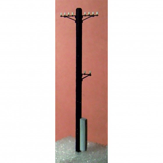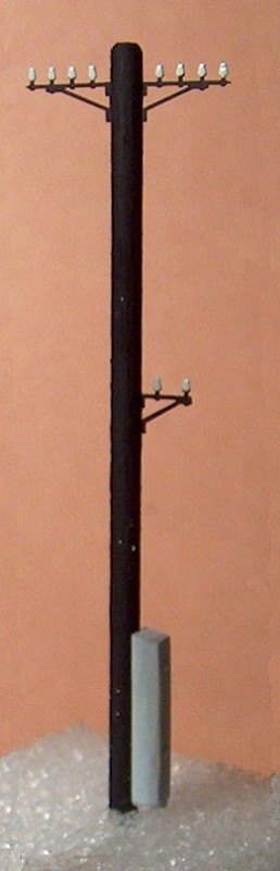 Stavebnice 10 kusů telegrafních sloupů obsabuje odlitky vlastních sloupů, betonových patek a lepty izolátorů. Konzoly nalakované černou barvou a doplněné bílou, hustou barvou na izolátorech, vypadají velmi reálně.