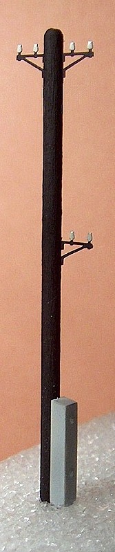 Stavebnice 10 kusů telegrafních sloupů obsabuje odlitky vlastních sloupů, betonových patek a lepty izolátorů. Konzoly nalakované černou barvou a doplněné bílou, hustou barvou na izolátorech, vypadají velmi reálně.