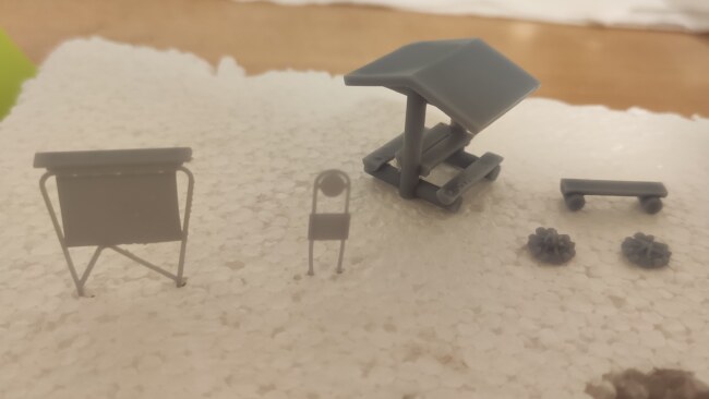 Jednoduchá stavebnice turistického vybavení (mapa, odpočívadlo, ohniště, stojan ČSAD…). Vyrobená 3D tiskem. Jedná se o již začištěný 3D výtisk. Stačí slepit díly k sobě, velmi jednoduchá stavebnice, zvládne i začátečník.