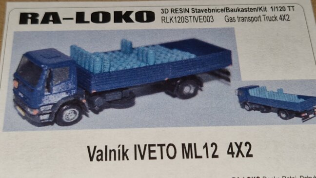 TT/1:120, polostavebnice valníku IVETO ML12 4×2 s nákladem tlakových lahví.