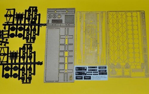 Použití: Mosazné díly se nejlépe spojí pájením, popř. vteřinovým lepidlem. Plastové díly lepit lepidlem na plastikové modely. Obtisky se přenáší vodou.