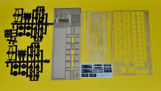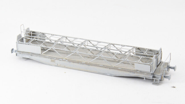 Stavebnice vyniká plastickým provedením detailů – dvojitě zesílené profily podélníků, vázací háky jako samostatné díly, podlaha zapuštěná do výšky bočnice a další drobnosti. Na spodku vozu je naznačen rám včetně zesílených vnitřních podélníků.