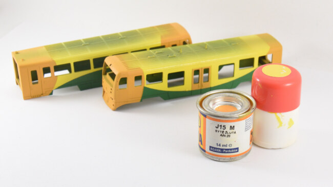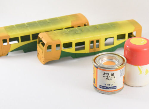 - nastříkat melounovou žlutou čela, vymaskovat čela a dveře nízkopodlažní části