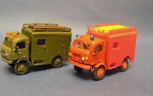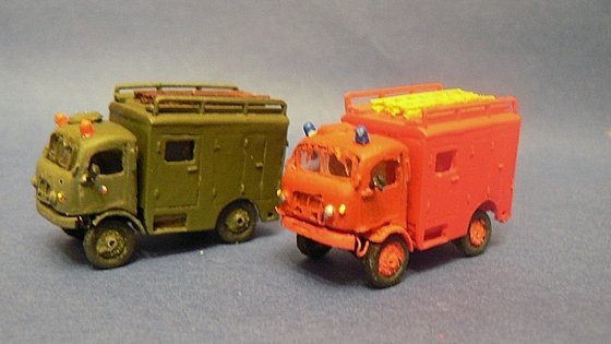 TT/1:120, stavebnice nebo hotový model nákladního automobilu T805 v hasičské verzi.