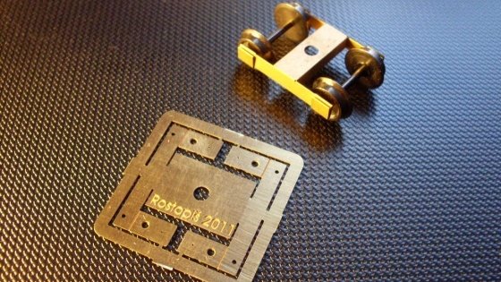 TT/1:120, leptaná stavebnice univerzálního podvozku pro rozchod 2300 nebo 2400 mm. Pozor – jen 0,16 mm mosaz!