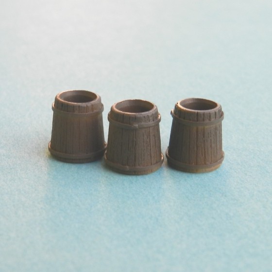 Stavebnice tří velkých věder na vodu vznikla původně jako příslušenství k vodním jeřábům, ale jistě najde uplatnění i jinde, například pod okapy k domkům nebo do zahrádky.