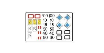 - 8x obdélníkové tabulky, například pro pomalou jízdu (na výšku – PJ) nebo místo zastavení/konec nástupiště (na šířku – KN)